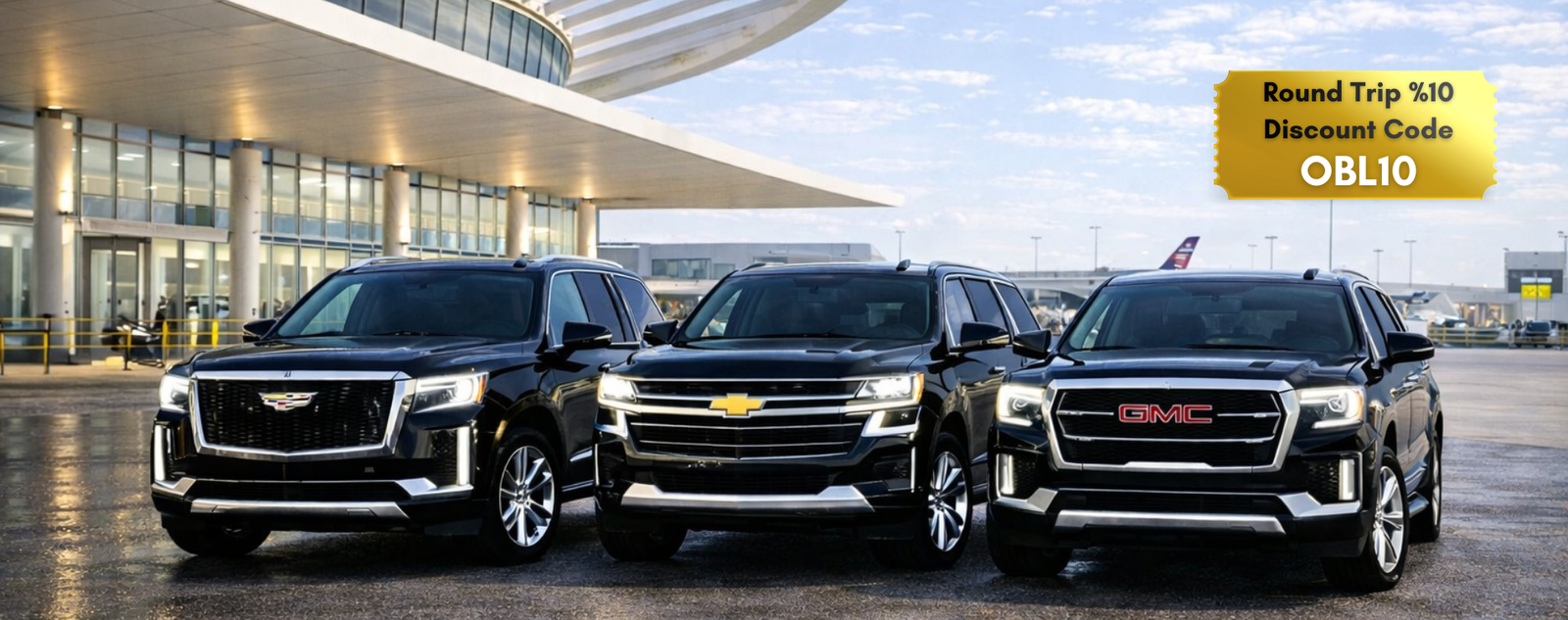 Our premium fleet includes the GMC Yukon XL, Chevrolet Suburban, Cadillac LYRIQ, offering exceptional comfort, style, and sustainability with two advanced electric vehicle options.